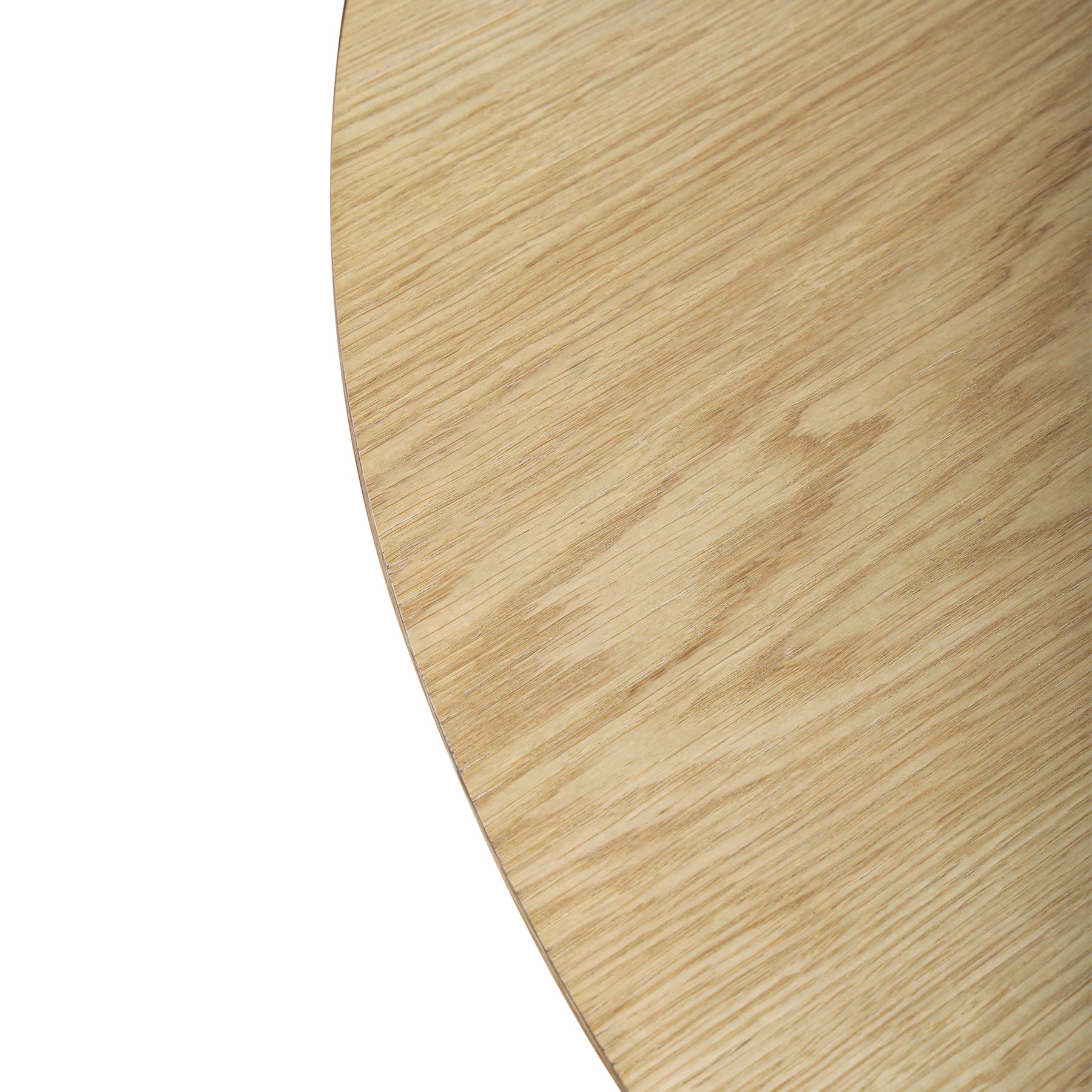 Cada Mesa Bell pasa por un proceso de control manual en las etapas críticas de producción: selección de la madera, prensado del enchapado, lustrado y terminación final. El enchapado de roble americano se aplica bajo presión en frío, un método que asegura adhesión uniforme y durabilidad a largo plazo. Las uniones, los cantos y la transición entre tapa y base se revisan a mano antes de cada terminación.