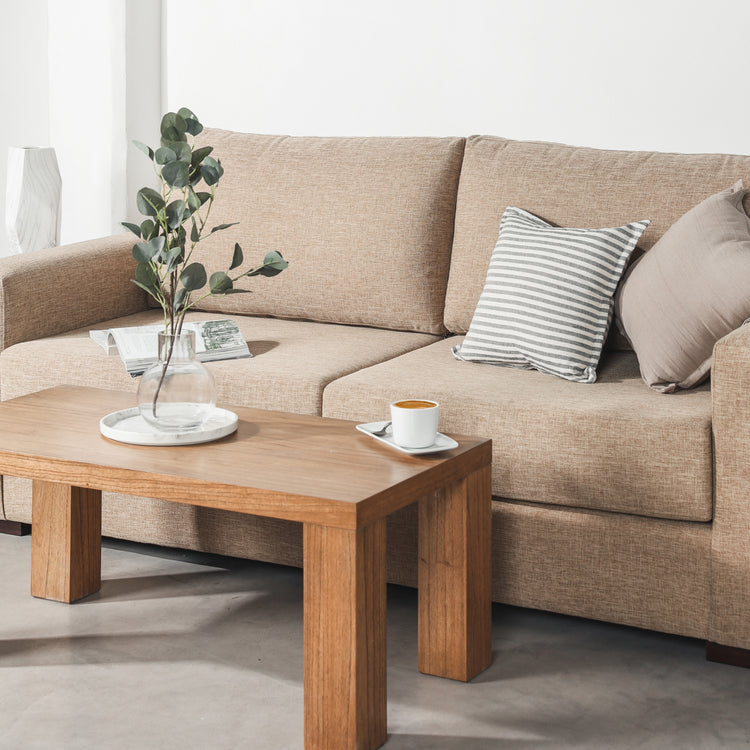Su volumen definido a medida se fusiona en una estructura que cuenta con una placa de alta densidad para asegurar mayor confort y permanencia en el tiempo. Disfrutá con tu familia o tomá todo el espacio para vos con este amplio sofá de 2 cuerpos.